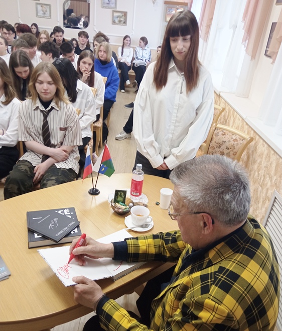 В завершение встречи многочисленные гости – студенты групп СТ-1-25в, ИСп-1-25в, преподаватели и все, кому близко творчество Анатолия Константиновича, задавали вопросы, делились впечатлениями, а также получили экземпляры новых изданий писателя с автографом.