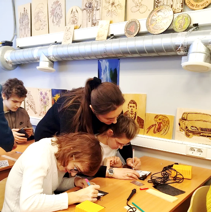 Участники мастер-классов получили представление о профессиях, ознакомились с инструментами и материалами, применяемые в работе. Посадили семена бархатцев, окунулись в творческую атмосферу выжигания.