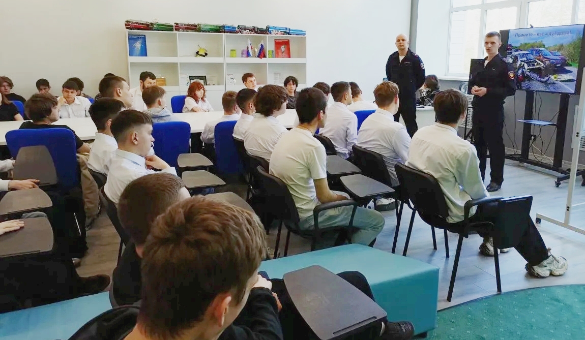 14 апреля в колледже прошла важная встреча студентов групп ТЭ-1-25в, ТЭ-1-23в и ОПУ-1-25в с заместителем командира батальона (по службе) батальона N2 ПДПС ГАИ УМВД России по Тюменской области майором полиции Страусовым Александром Александровичем, который провел профилактическую беседу «В дорожной безопасности — начни с себя!».