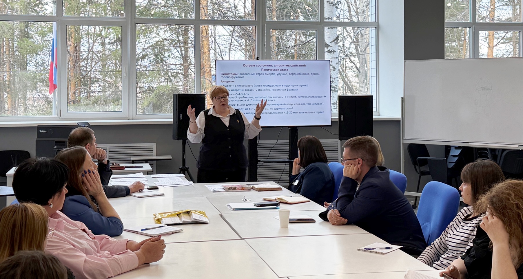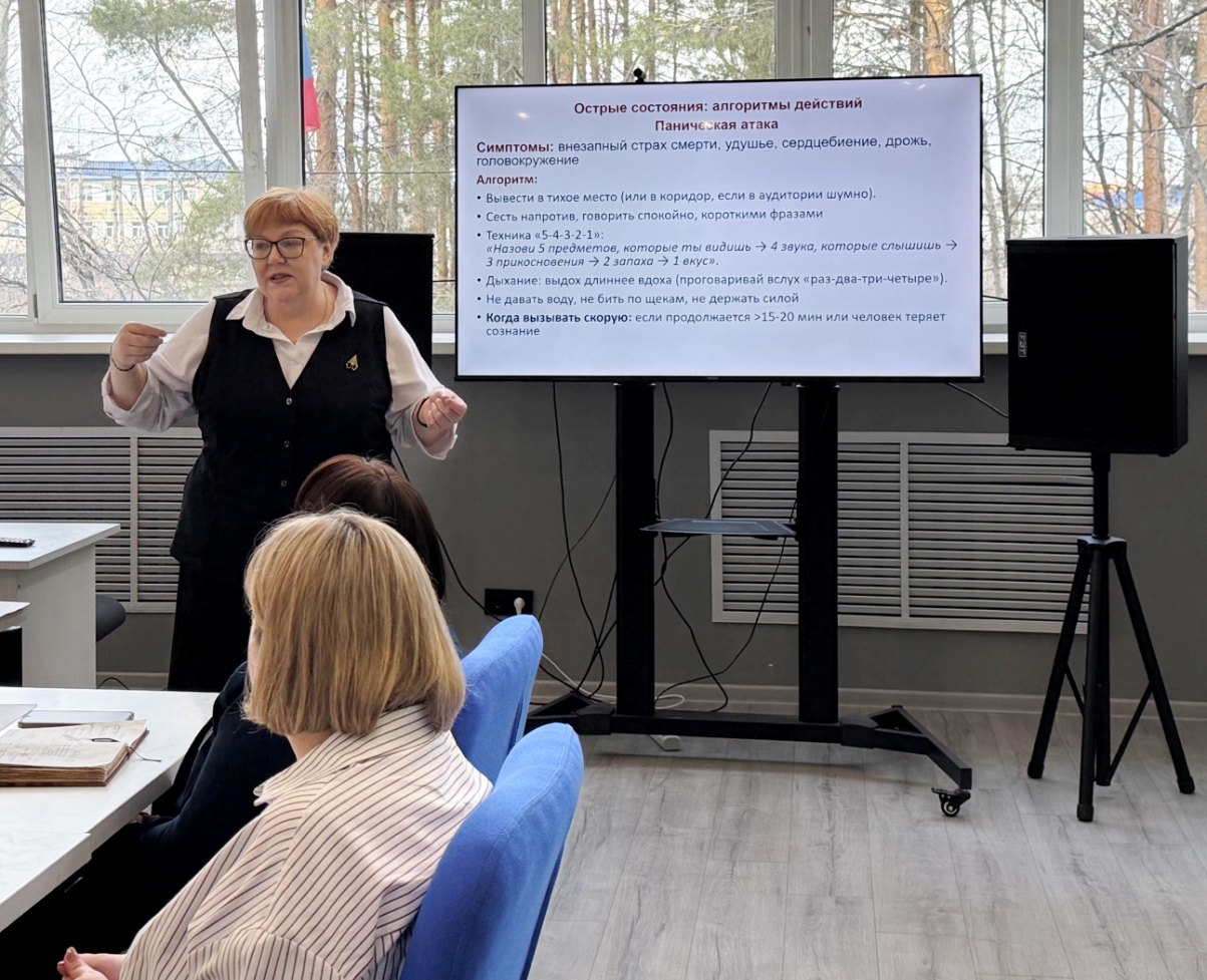 Психологи провели два семинара. Первый — про эмоциональное выгорание: как не растерять себя и разрешить себе отдыхать без чувства вины. Второй — основыпсихиатрической грамотности: педагоги получили чек-листы для распознаваниясамоповреждающего поведения и ПТСР у студентов, а также алгоритмы действий припанической атаке.